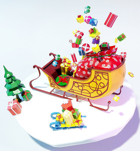 Sleigh with gifts lowpoly Low-poly 3D model