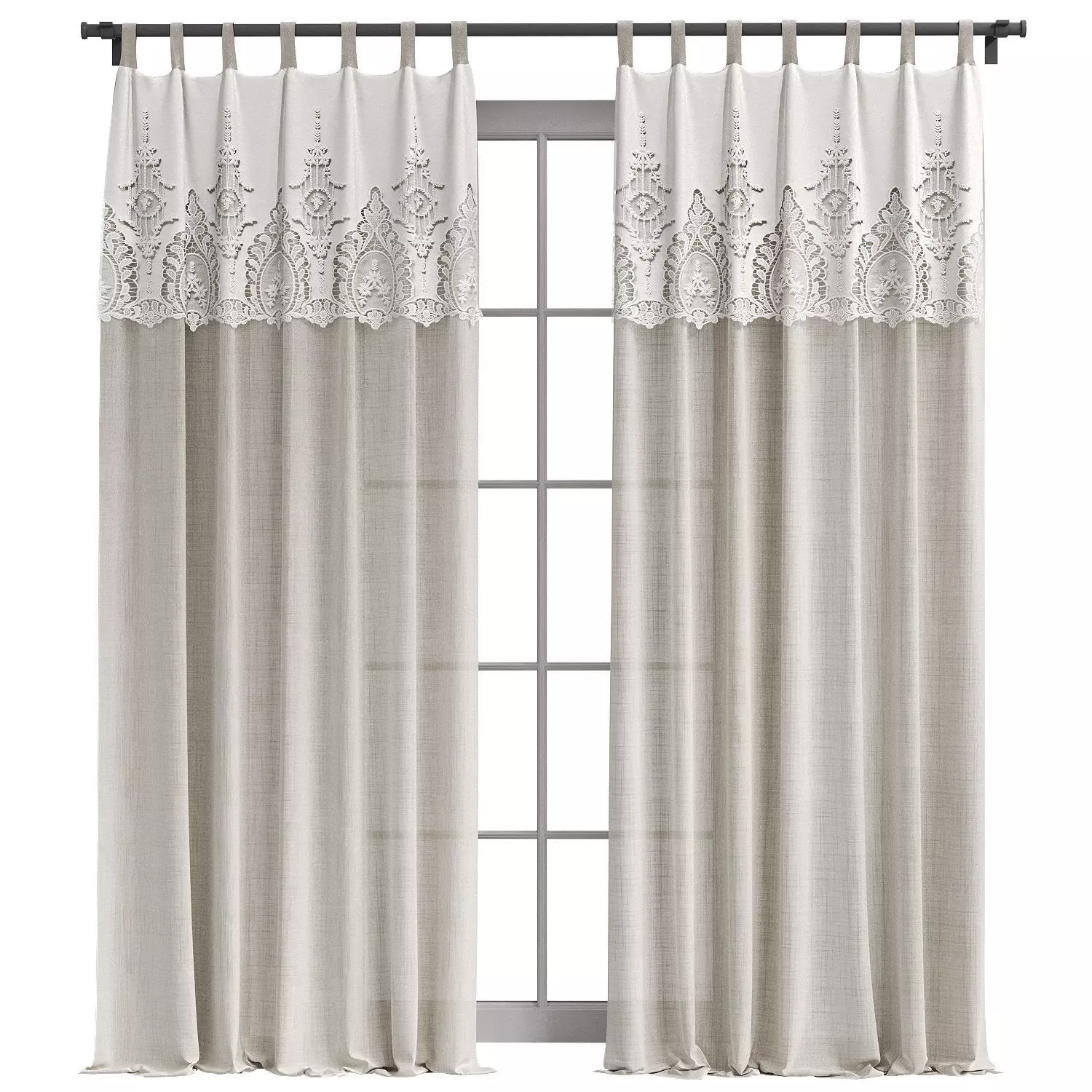 Linen curtains with lace 3 3D model