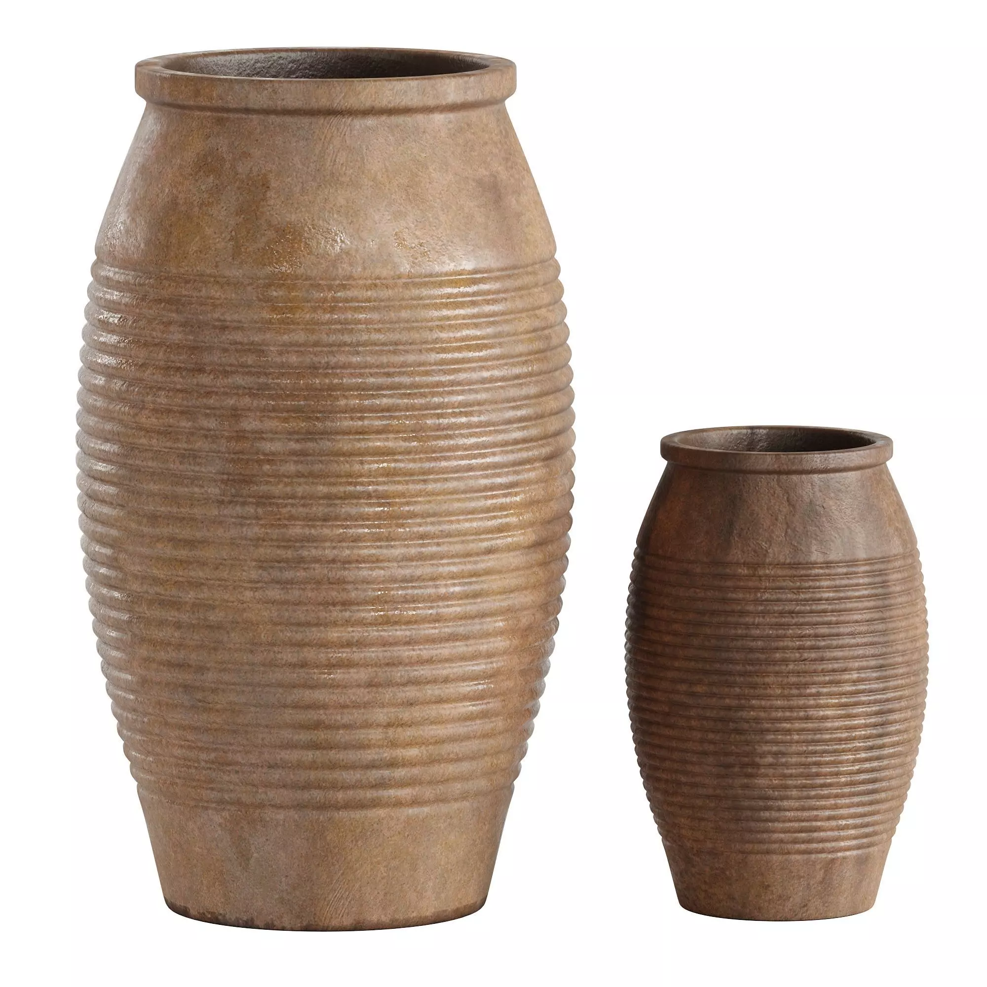 Set of two terracotta flower pots with a natural finish. Horizontal striped pattern with raised reliefs.Suitable for indoor and outdoor use.This 3D model is a reproduction inspired by a real product.