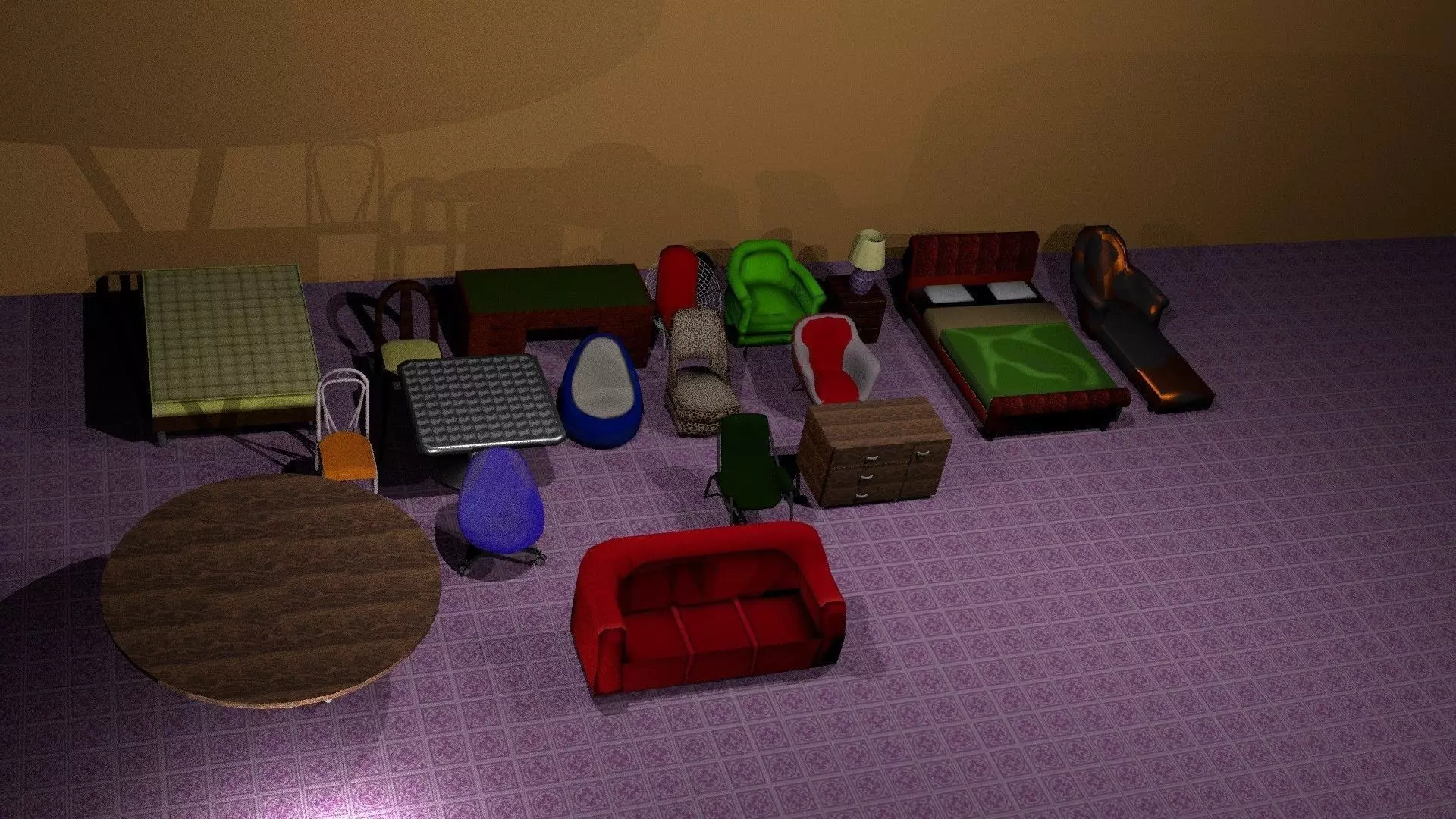 The model has material settings that define how surfaces look (color, shine, transparency, etc.).