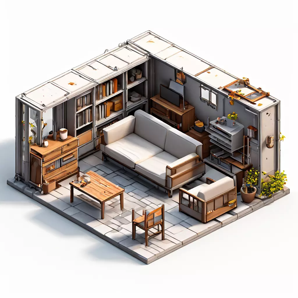 This low-poly isometric living room model is ideal for game development, especially stylized or mobile games. It features a couch, armchair, table, shelves, and other furniture, creating a cozy, lived-in atmosphere. Suitable for both real-time applications and static renderings. Available in FBX, OBJ, and GLB formats. This model is optimized for real-time use with clean topology and UV unwrapped meshes. It includes simple textures. Ideal for quick integration into your game projects, dioramas, or virtual environments.