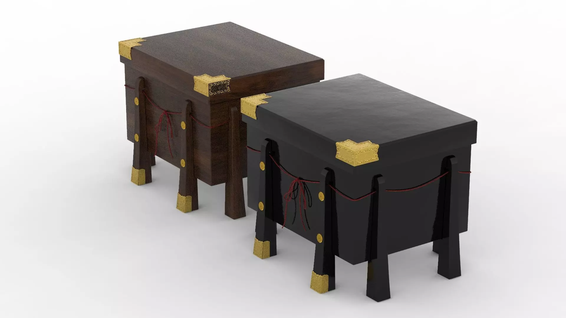 The chest has two different materials: traditional black lacquer and woodAll textures are 4K resolutionIncluding diffuse, glossy / roughness, normal map., metalness, AOFaces 24.683, verts 25.025With metal ornaments