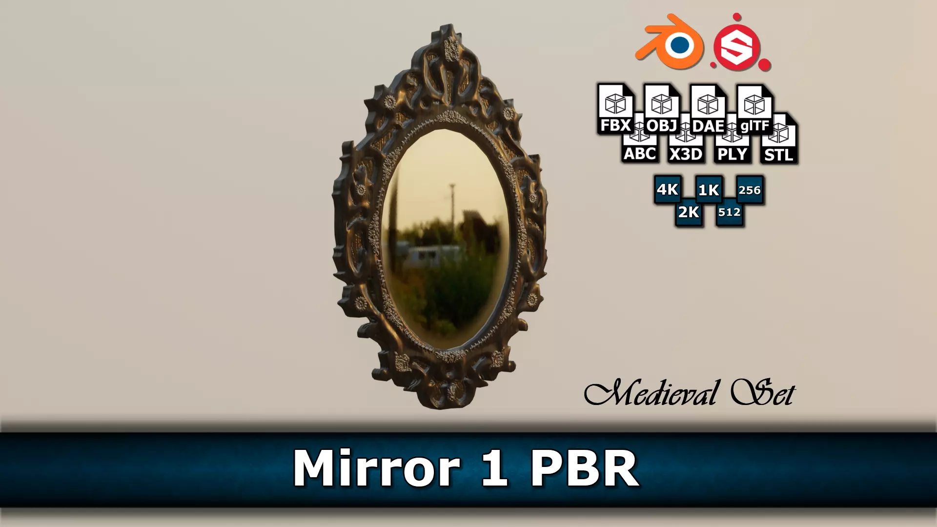 • A low-poly/game-ready model of a medieval mirror with PBR-textures.