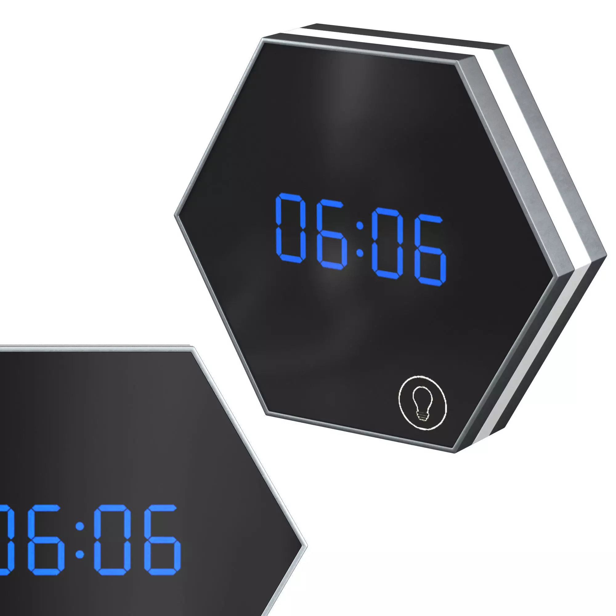 Name: Mirror Hexagon Alarm ClockType: modelFormat: 3Ds Max 2013Export: FBX, OBJ, 3DS, MATRender: VRay (3.x), Corona (3)Polys: 2072Verts: 2100Matclasses: VRayMtl,CoronaMtlUnits: MillimetersDimension: 539.23 x 116.19 x 467.65Modeller: Artem RAdionovPreset: FULL CUSTOMDate: 2023.6.21Viruses: Clean, tested by PruneScene!Preview: YesTags: mirror, hexagon, alarm, clock, desktop, backlight, alarm clock, bedside