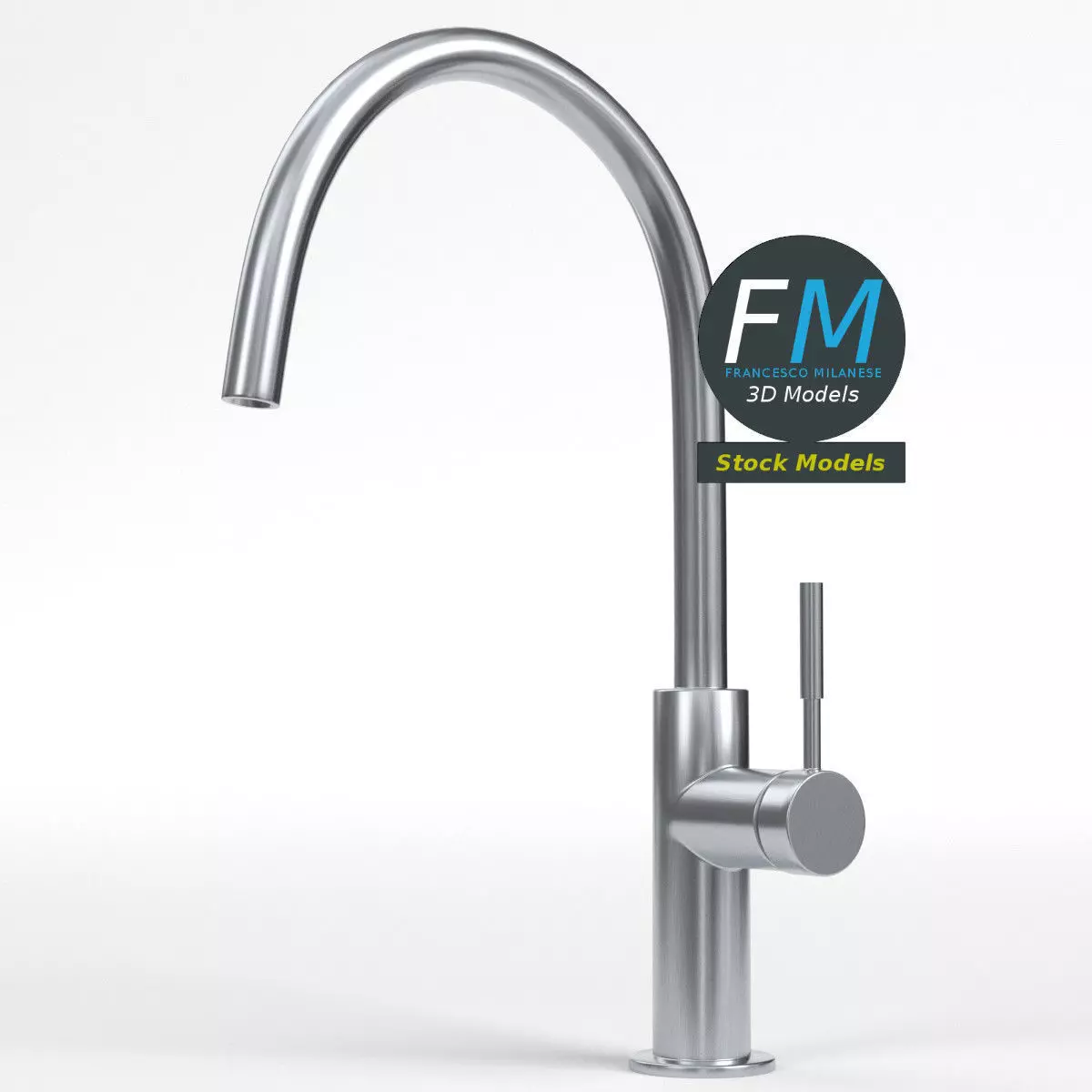 Modern kitchen faucet 3D Model. 2 individual objects (faucet, handle), sharing the same non overlapping UV Layout map, Material and PBR Textures set. Production-ready 3D Model, with PBR materials, textures, non overlapping UV Layout map provided in the package.Quads only geometries (no tris/ngons).Easily customizable: UV unwrapped geometries; UV Layout maps provided in the package as png with alpha images.Each Object, Material or Texture provided in the package has a unique, meaningful name.Made in Blender 3.6.1 LTS with Cycles Principled BSDF PBR shader with textures included (Eevee compatible), then exported to OBJ and FBX; materials and textures made in Substance Painter (Adobe 3D Painter), exported for PBR, Cycles, V-Ray, Unity, Unreal.PROMO IMAGES: the first image has been rendered in Cycles for Blender; in particular, you can find 11+ promo images in this description: