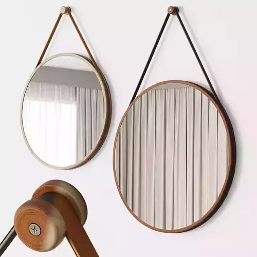 Modern Leather Round Hanging Mirrors - West Elm 3D model