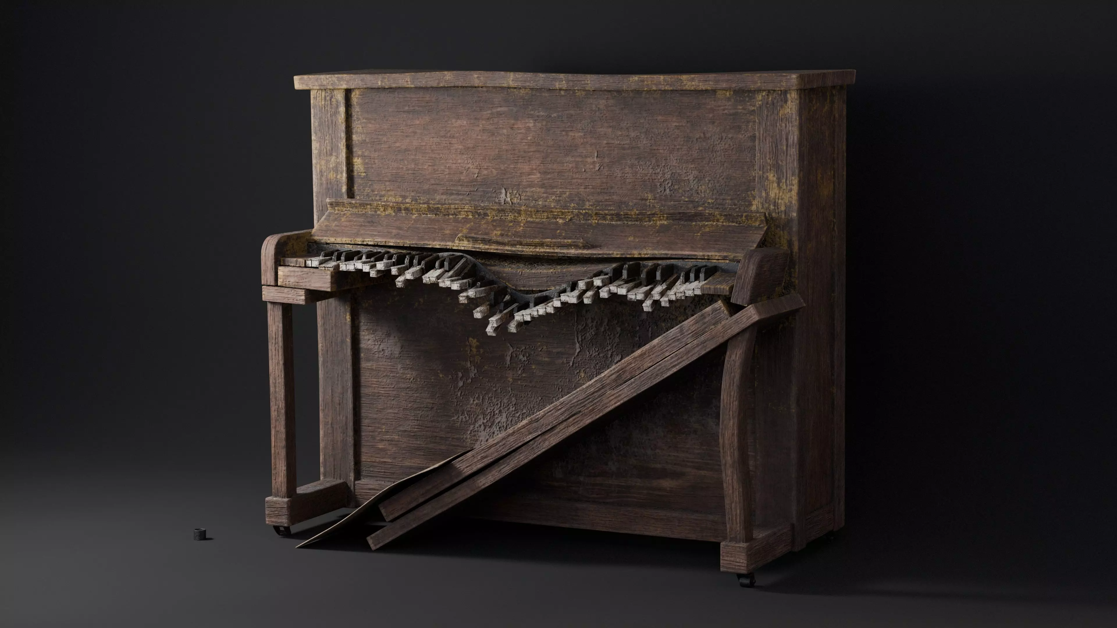 Old Broken Wooden Piano – Game-Ready 3D Model