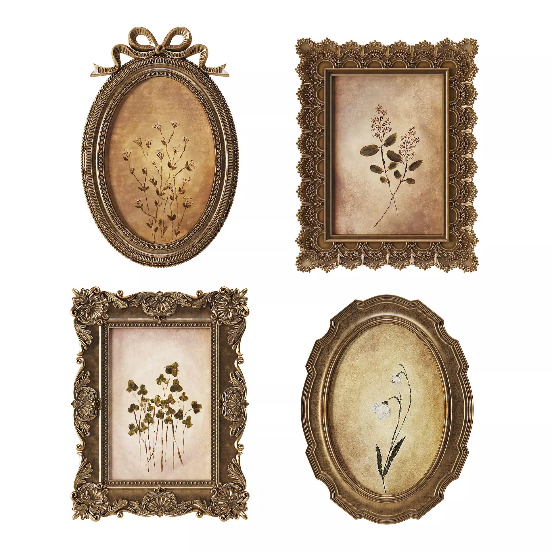 Classic pictures in classic frames for interior4 frames in different shapes with floral prints