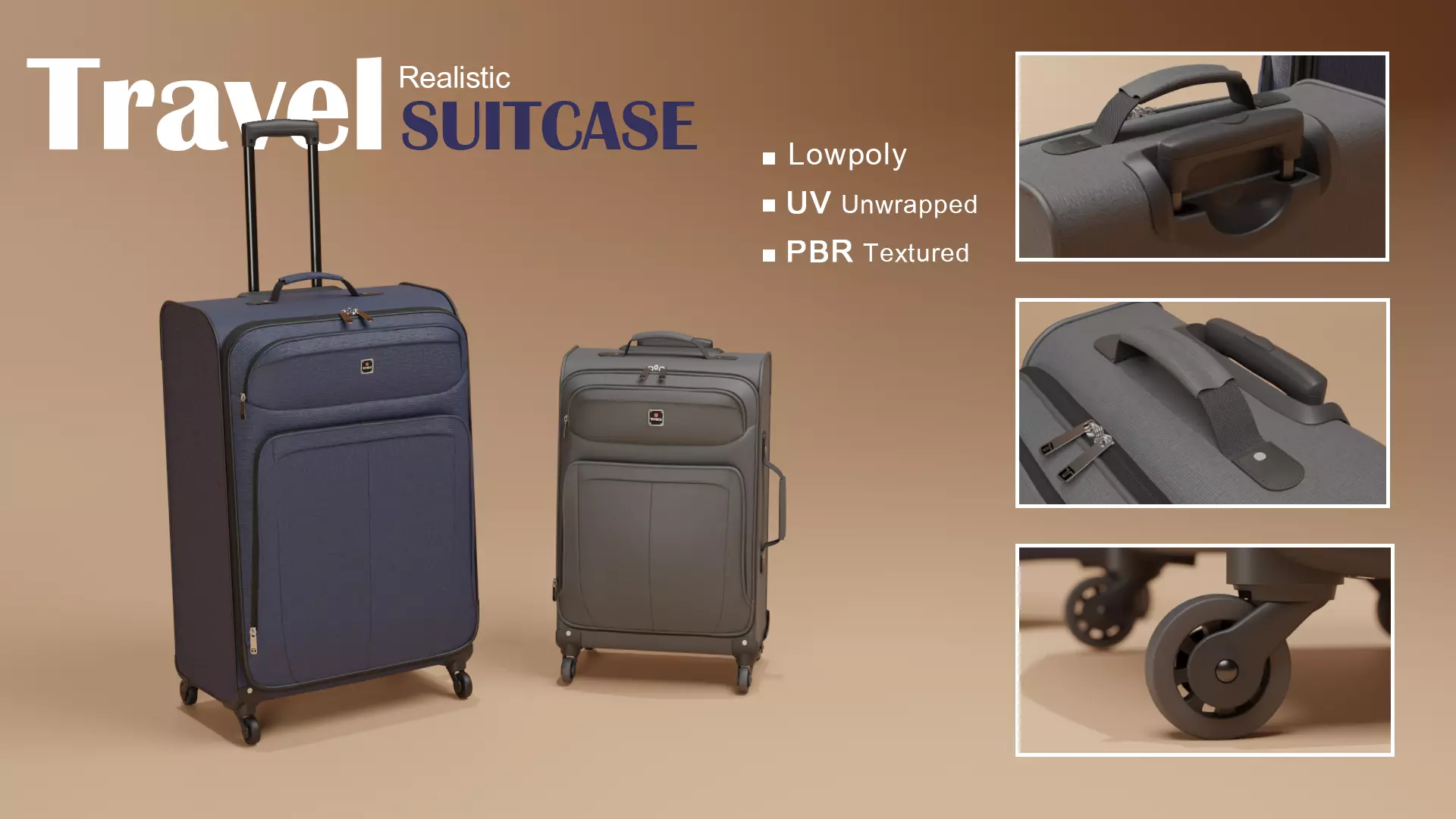 This realistic lowpoly 3D model of a travel suitcase is based on a real-life product, accurately modeled to capture its proportions and design. It's ideal for games, AR/VR, and real-time rendering. The model features clean geometry, optimized UVs, and lightweight PBR textures for efficient use across various applications.