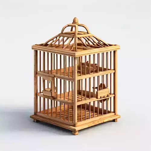 This 3D model depicts a detailed wooden bird cage, suitable for various applications such as game development, architectural visualization, and digital art. Available in multiple formats including GLB, OBJ, FBX, and STL, this asset is optimized for both real-time and static rendering. It features clean topology, UV unwrapped meshes, and PBR textures for realistic rendering. The cage includes intricate details like perches, a small door, and a classic domed roof. Whether you're creating a realistic scene or a stylized environment, this versatile model is a valuable addition to your 3D asset library. Ideal for adding a touch of vintage charm or creating a captivating focal point in your projects. This model is ready to be imported and used in your preferred 3D software.