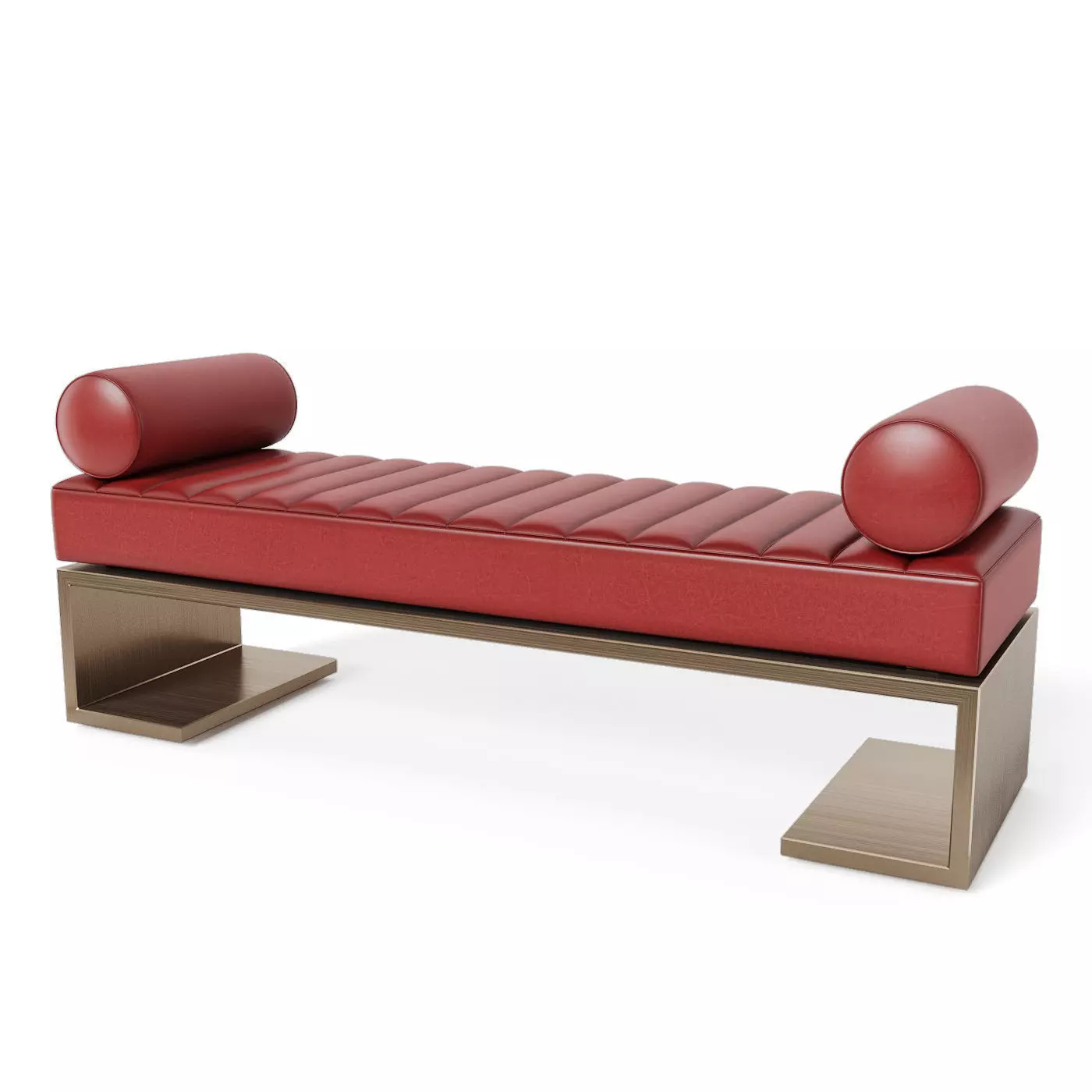 Red leather, saddle stitch, 2 cushions included.Bronze structure. Red leather seat.180cm x 48cm x 45 cm.Edition 2018.