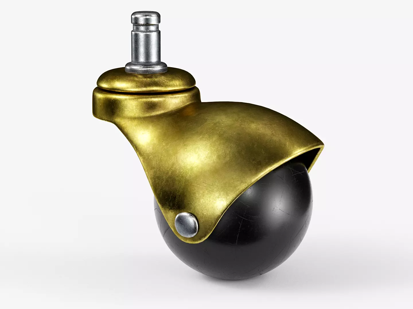 3D model of classic brass round ball caster wheel.