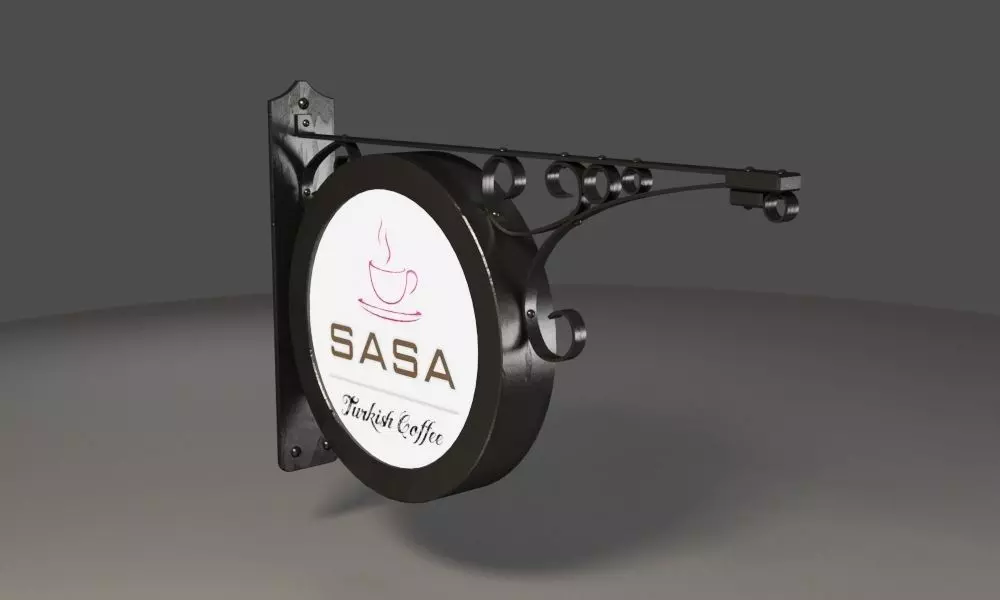 Round illuminated Wrought Iron Sign Board 3D model