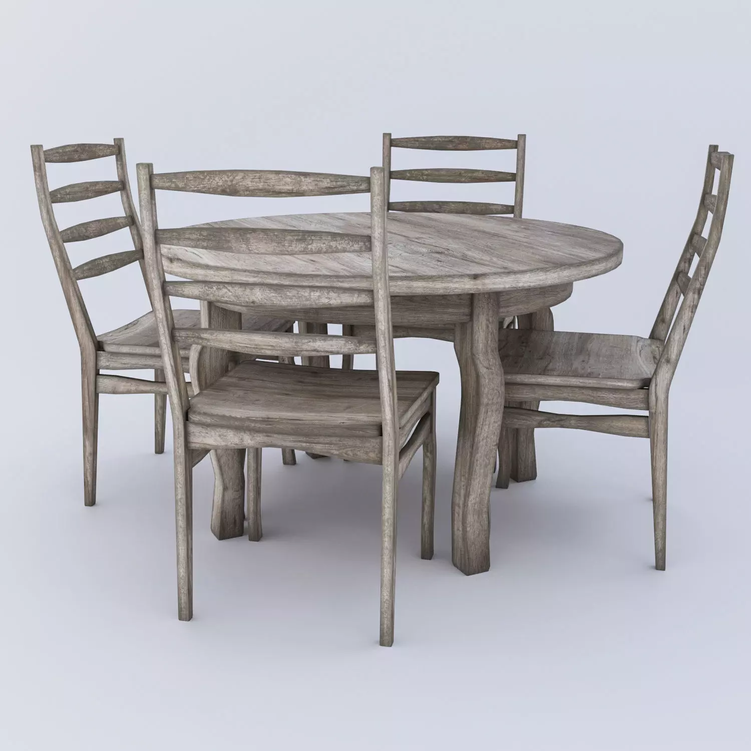 Round table and Chairs - aged wood Low-poly 3D model