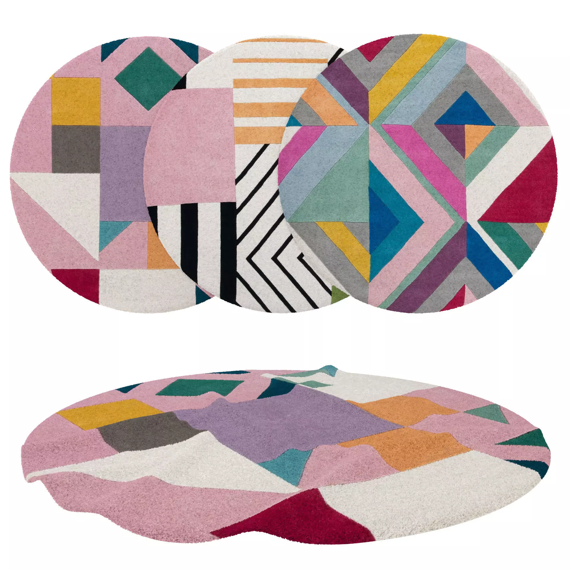 The set consists of 6 round carpets.3 rugs with folds and 3 without.