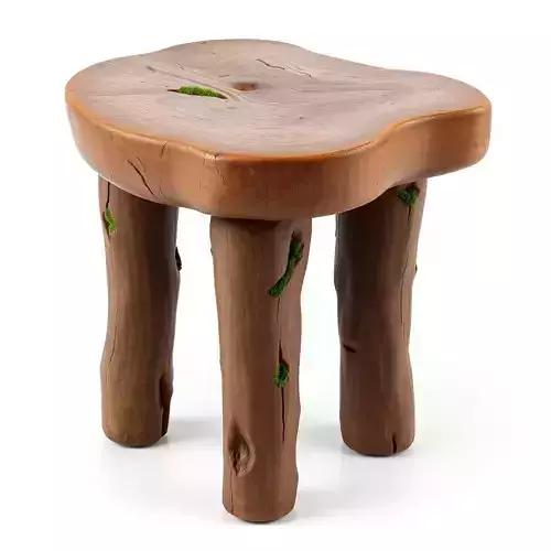 This highly detailed 3D model presents a captivating rustic wooden stool, inspired by the organic forms of nature. Crafted to resemble a natural tree stump or robust tree branches, its unique design features an irregularly shaped, smooth wooden top with authentic grain patterns and subtle cracks. Patches of vibrant green moss are intricately placed within the wood's natural crevices on both the seat and the sturdy, branch-like legs, adding a touch of enchanting forest realism. This versatile asset is ideal for a wide range of applications, including immersive game development, where it can enrich fantasy, forest, or outdoor environments in RPGs and adventure games. It's also perfect for architectural visualization projects, bringing a natural and earthy aesthetic to eco-friendly interiors, cozy cabins, or serene garden scenes. Digital artists can utilize this model for realistic still life compositions or environmental set dressing, while its suitability for AR/VR experiences can enhance virtual spaces with organic details. The model is meticulously crafted with clean topology, ensuring easy integration and optimal performance. It is fully UV unwrapped and includes high-resolution PBR (Physically Based Rendering) textures to deliver lifelike visual fidelity across various rendering engines. Optimized for both real-time applications and high-quality static renderings, it supports popular 3D file formats such as GLB, OBJ, STL, ABC, DAE, FBX, USD, and PLY, making it readily compatible with most 3D software and platforms.