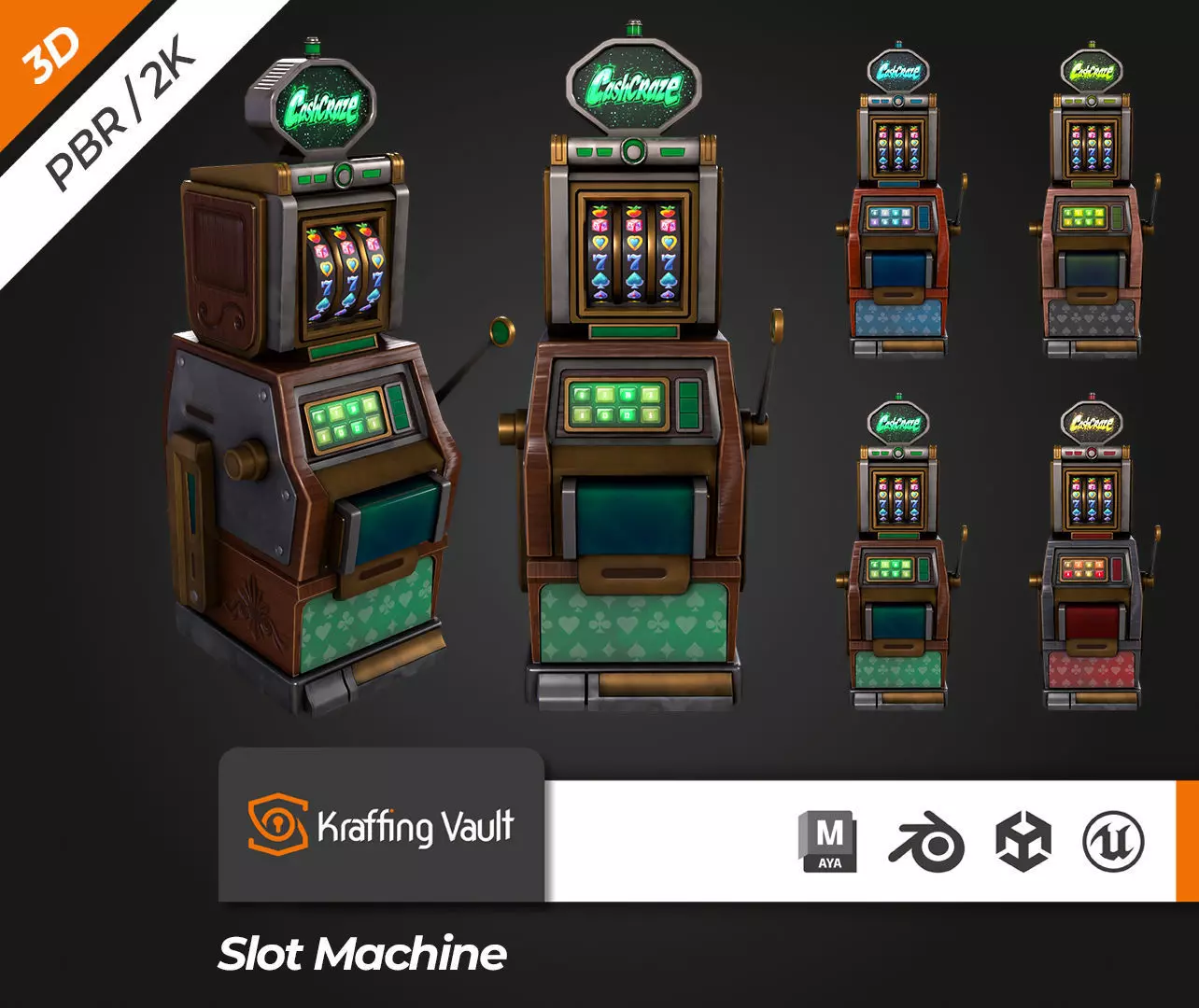 Kraffing presents a 3D modeling Slot Machine V1. Recreated design so you can use it in personal projects, scenes, videogames and more.