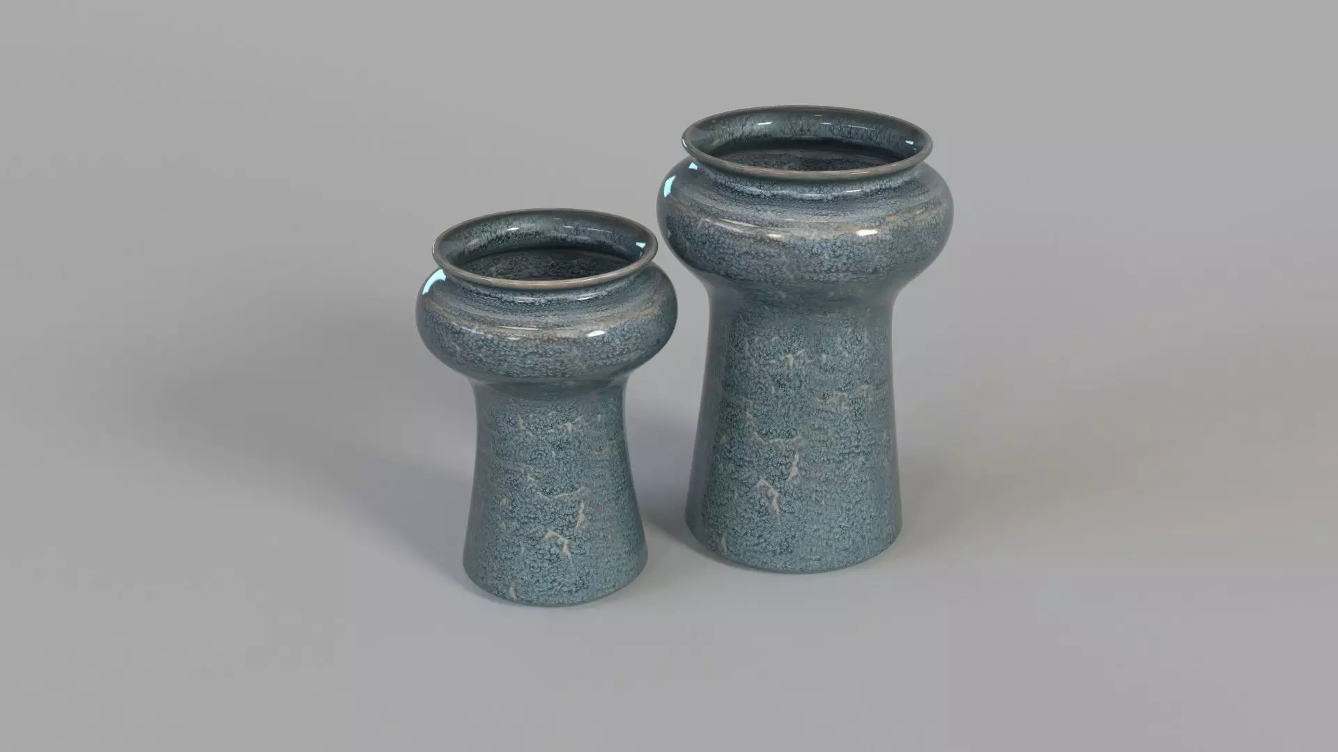 Snorkel Vases Blue Reactive Glaze Set Of 2 3D model