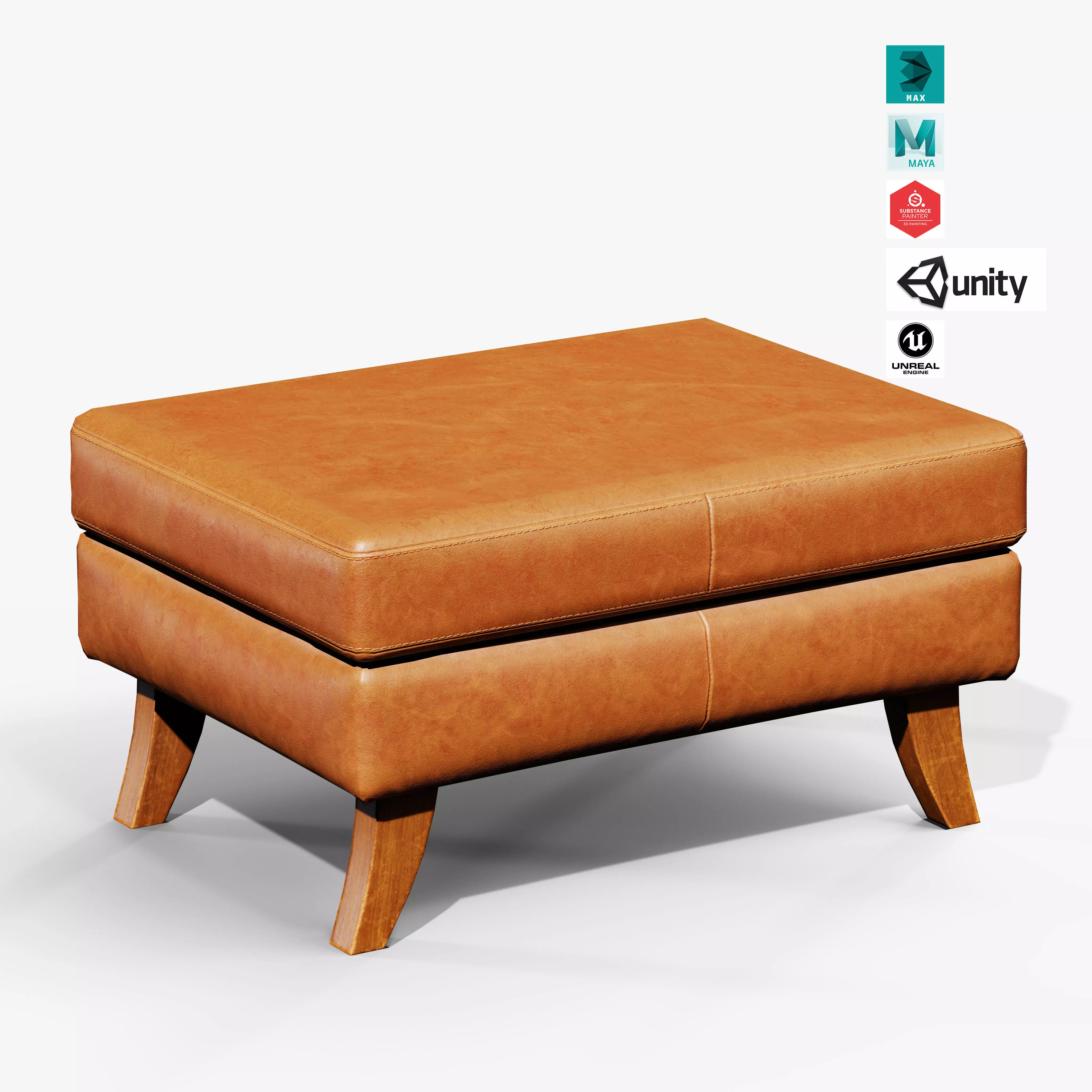 AAA Game-Ready Low-Poly Square Ottoman Stool – Optimized for Unreal & Unity