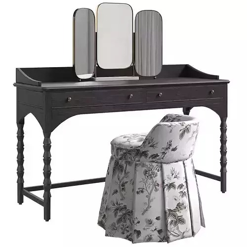 The Topia console table from Ginny MacDonald's exclusive collection for Lulu and Georgia complements the Jess chair and Alice Gold triple vanity mirror.Table dimensions: 137x49x86 cmchair dimensions: 58x58x61 cmDark wood, ash, tabletop three-piece mirror, pouf, fabric, classic, bedroom, wardrobeThe model uses Corona Mtl materialsUnits of measurement mm.The model is set at zero coordinates.Reset XForm and Prune Scene script applied.The creation of Vray materials is done through a converter.All textures and materials have logical names.