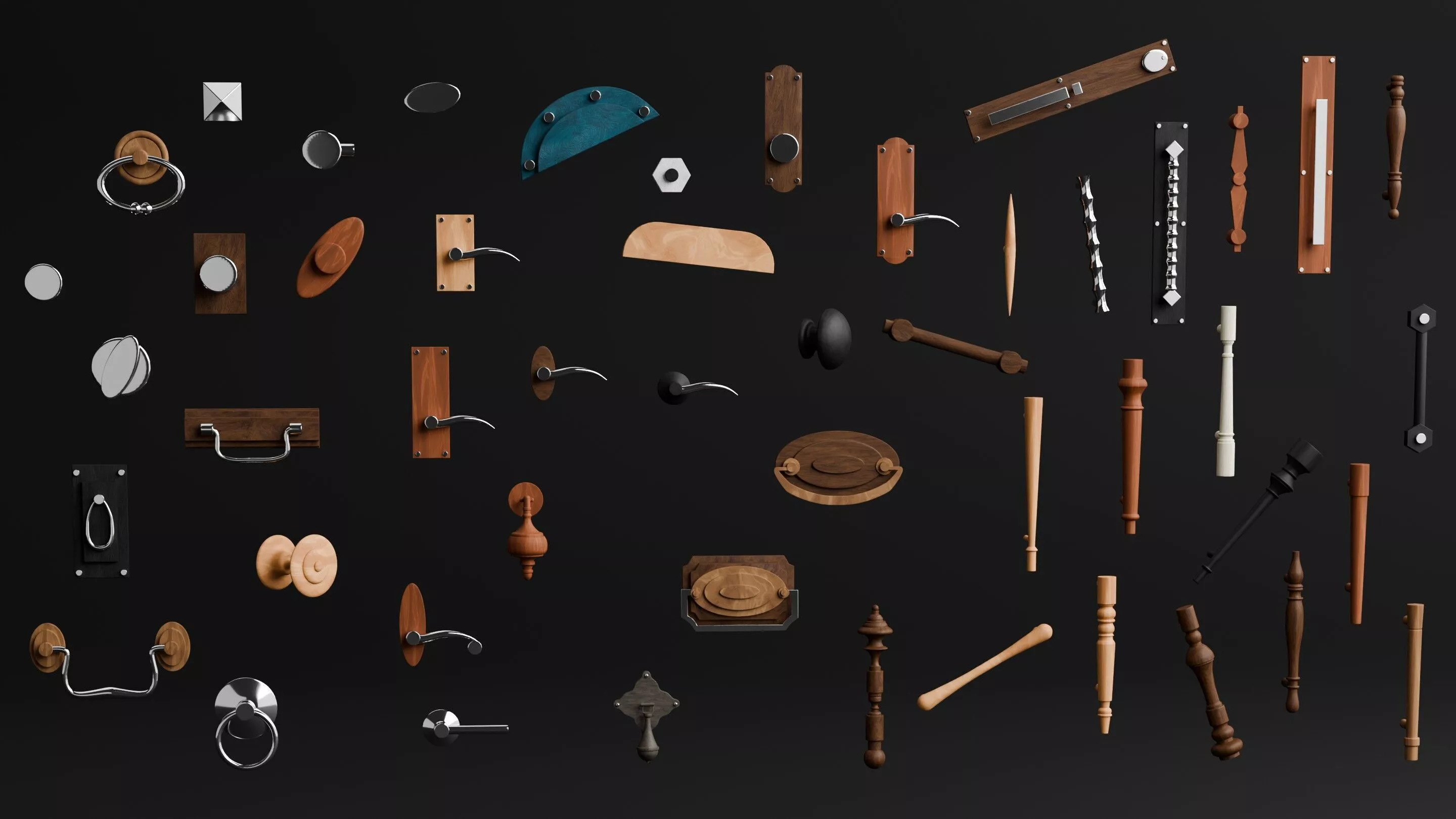 Ultimate Door Handle & Knob Collection is a high-quality, production-ready 3D asset pack featuring a wide variety of realistic door hardware designs, including knobs, lever handles, pull handles, and decorative wooden elements.