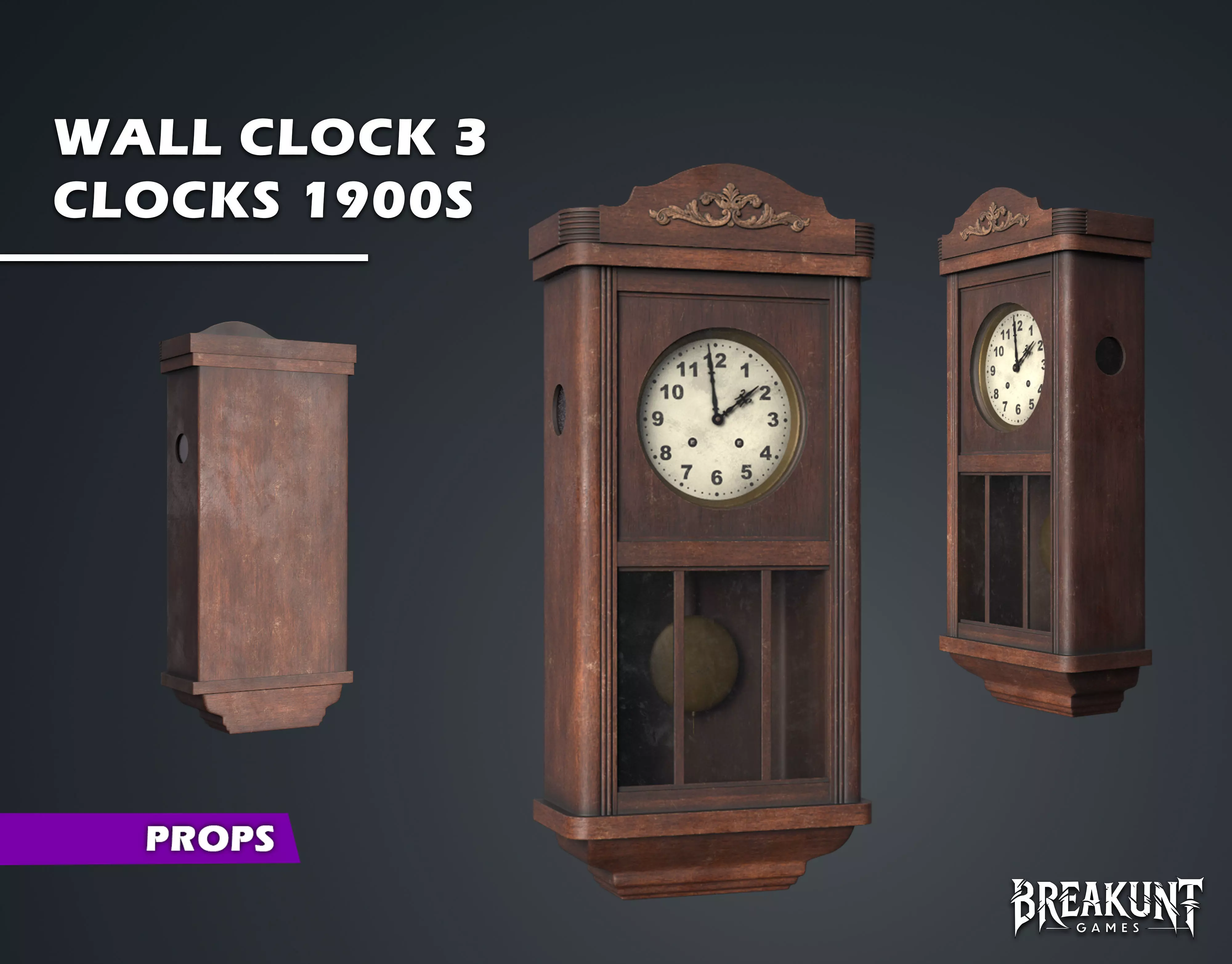 With this realistic antique wall clock inspired by early1900s interior pieces. Built with a richly aged wooden body, a readable vintage dial, subtleornamental details, and a lower glass section revealing the moving pendulum, this asset brings bothvisual authenticity and storytelling value to historical, horror, and realistic scenes.The model focuses on strong silhouette quality and believable material response, with careful attention givento the exterior wood wear, glass surface, aged clock face, and decorative top ornament. The lowercompartment adds extra depth and realism by exposing the pendulum area, making the prop feel more aliveand instantly recognizable in close-up shots as well as mid-distance compositions.Perfect for games, cinematics, realistic interior environments, haunted houses, periodrooms, Victorian hallways, and old mansion scenes. It is designed to integrate easily into real-time andrendering workflows while keeping a strong visual presence as a hero prop or background storytellingelement.