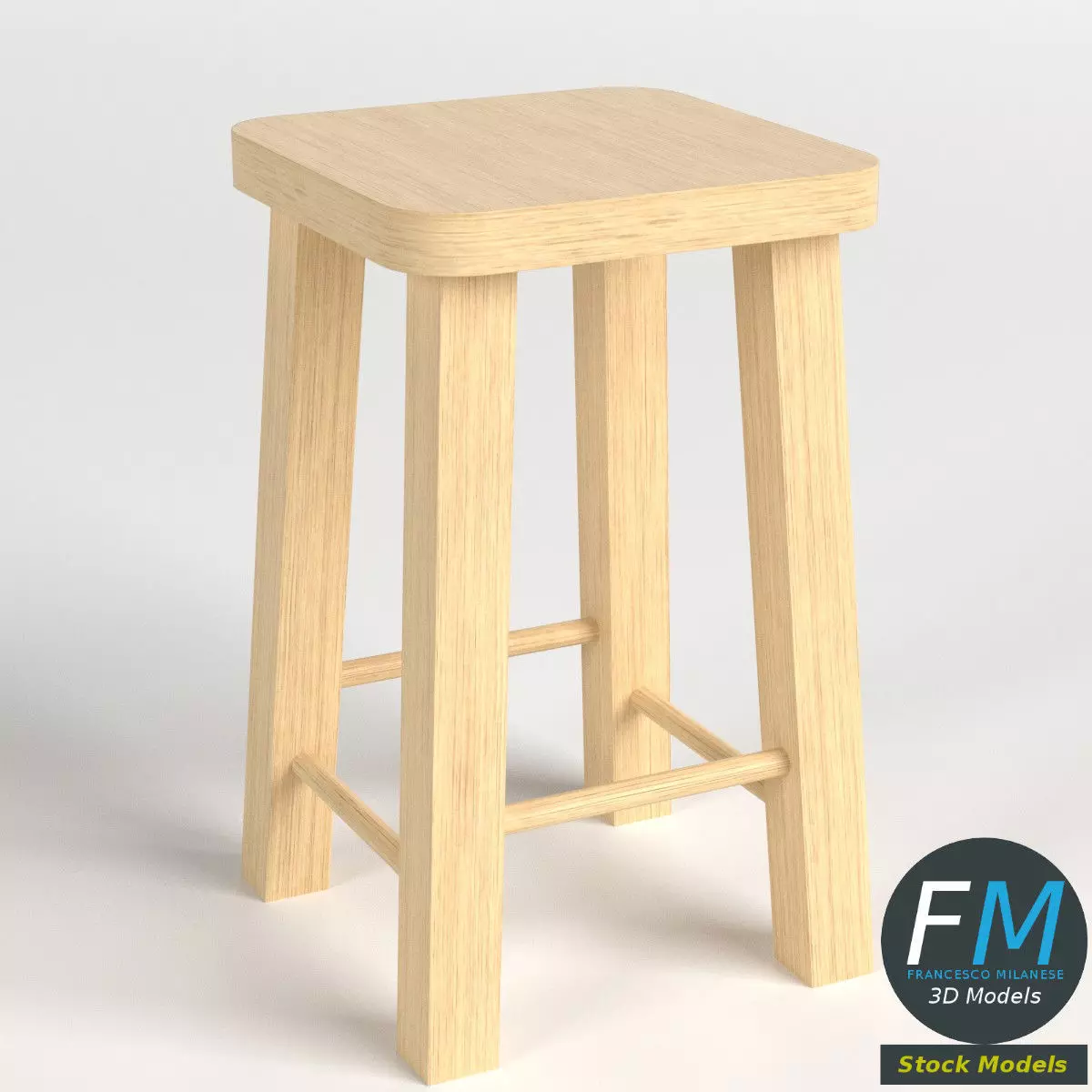 Wooden stool 3D Model. Production-ready 3D Model, with PBR materials, textures, non overlapping UV Layout map provided in the package.
