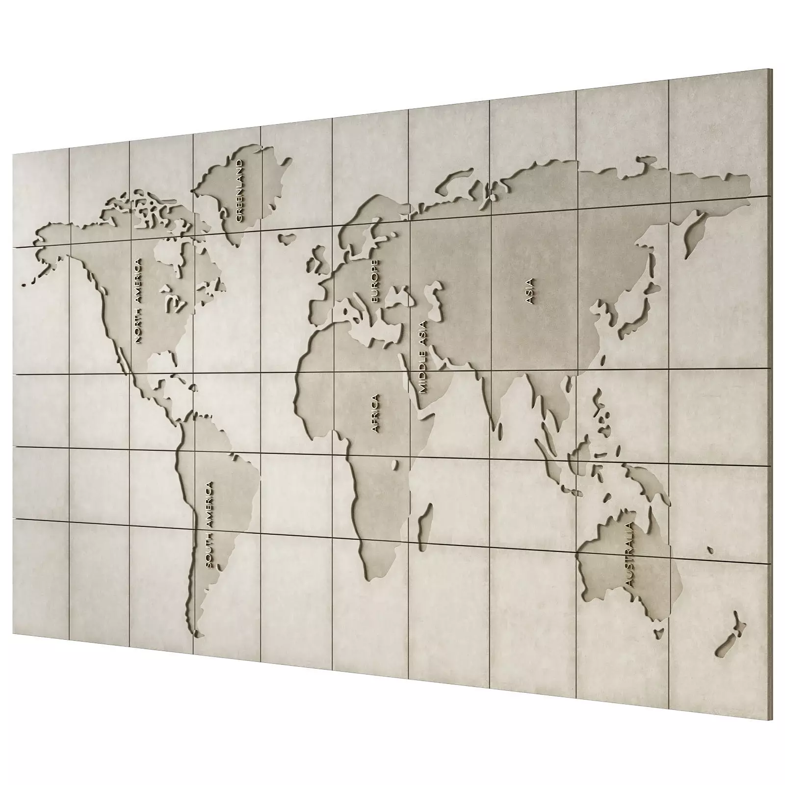 World map made of decorative concrete. Suitable for decorating the walls of an office, travel agency, and other public places.