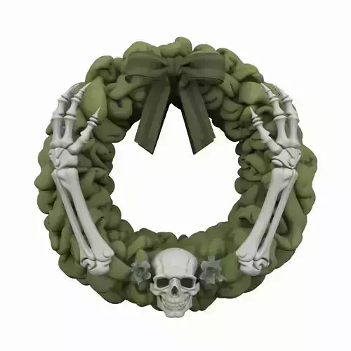 3D Festive Green Door Wreath with Bone White Skeleton 3D model