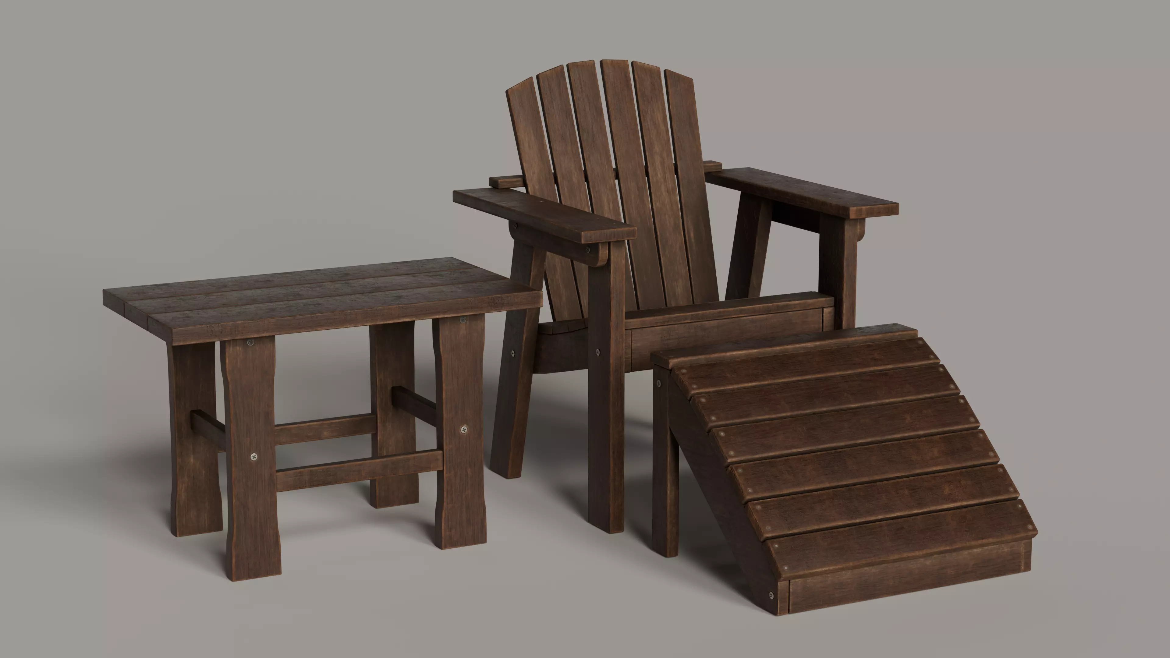 Here is a high quality & realistic Adirondack Set including a chair model, foot rest model, and side table model. All can be used together, or seperately! Great for Archviz, Game scenes, and more! Please reach out with any questions or requests.