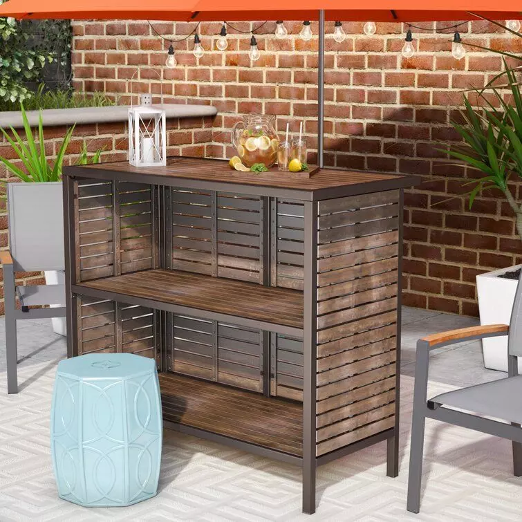 • Love to entertain outdoors? Make sure you have the right bar to go with your favourite furniture. Crafted from acacia wood and metal, it showcases a rustic yet modern design thanks to its slatted design and open shelving.