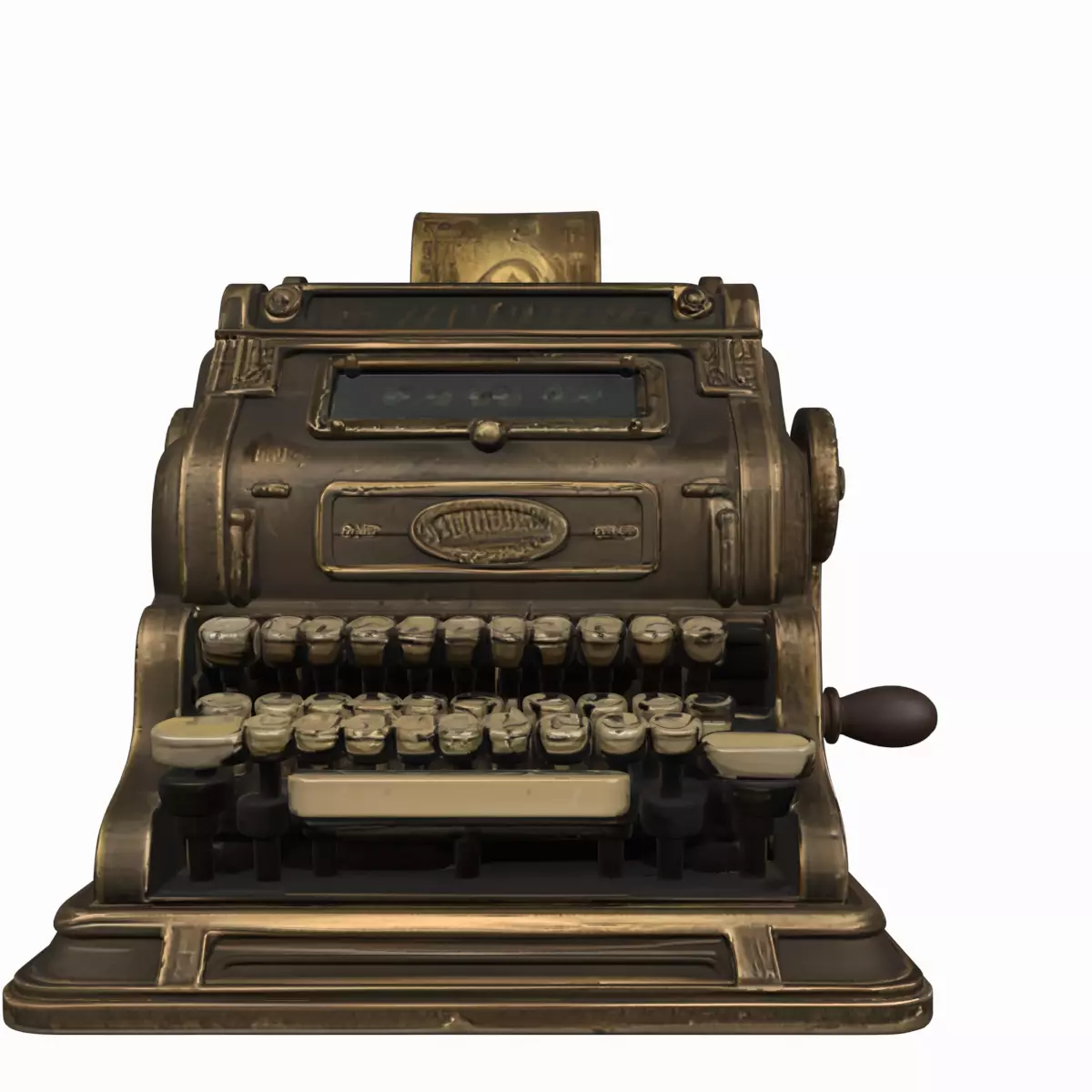 Classic 3D Adding Machine Model Paper Tape and Crank Handle 3D model