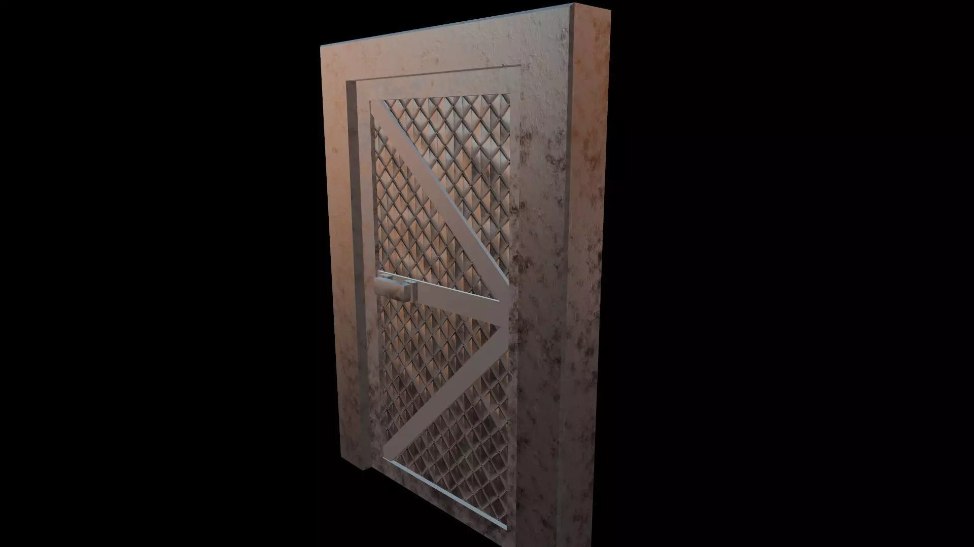 A worn metal door. A static object for use in your games. It is not animated.