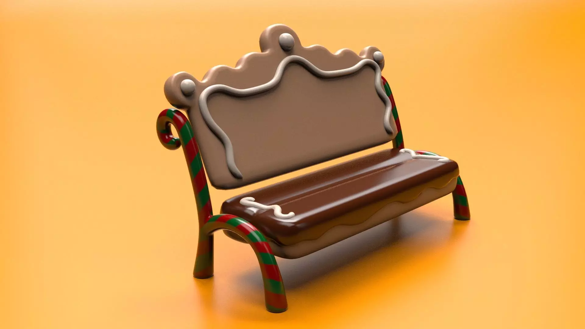 Low-poly 3D model of gingerbread bench. Nice clean topology ready for smooth without problem. Perfect for closeups MODEL Polycount: Polys -13200 Verts - 6100