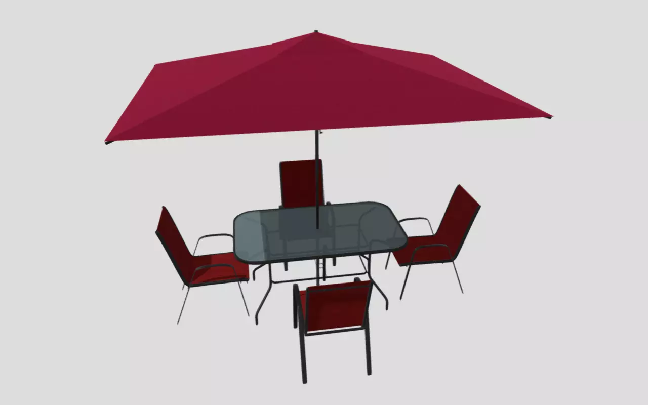 Included in this set are four meticulously crafted chairs, perfectly blending form and function. Experience the ultimate relaxation as you enjoy the beauty of your virtual surroundings. The dimensions of this set, providing ample space for comfort and convenience, make it ideal for a variety of virtual outdoor scenes.