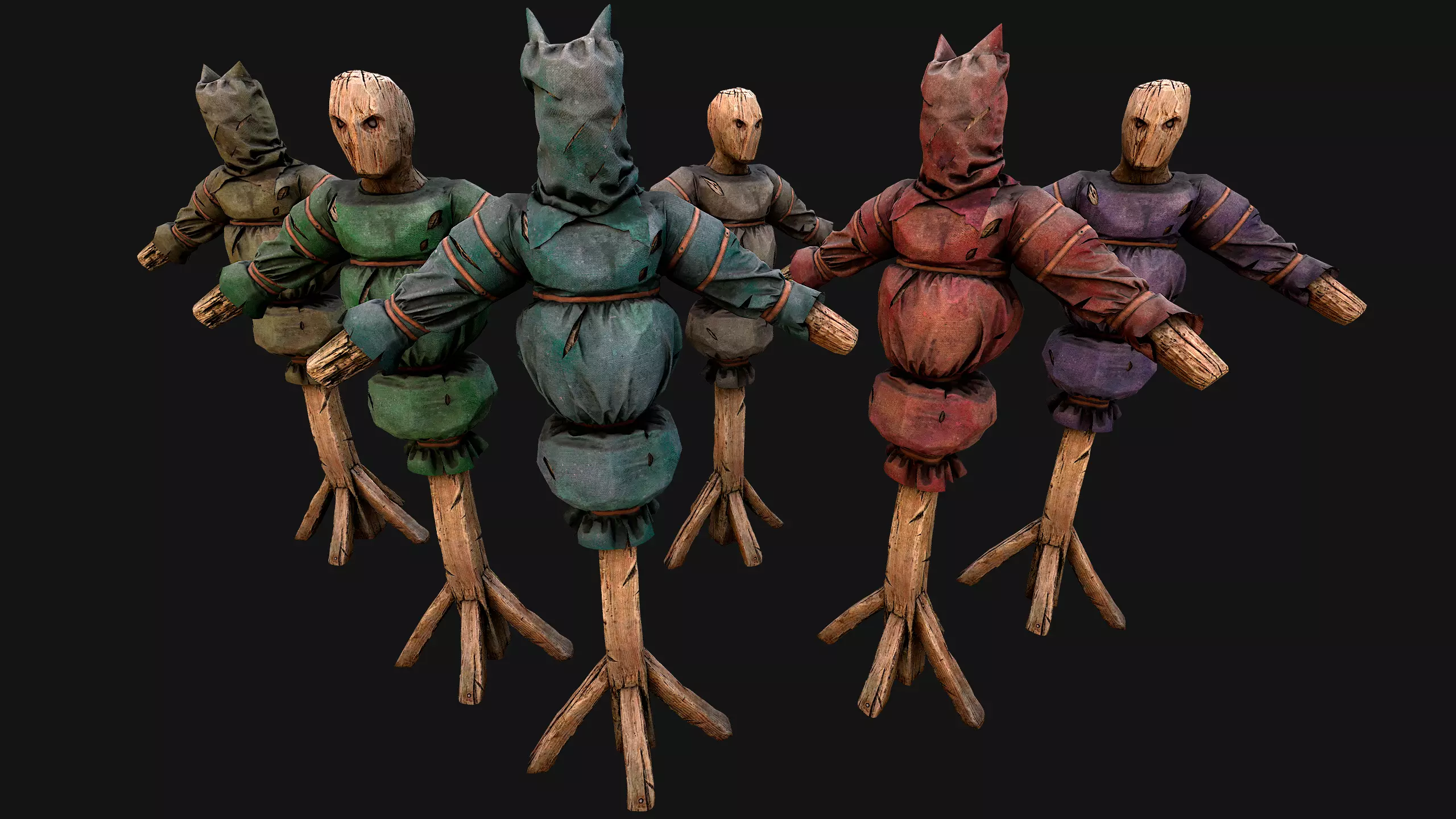 Game ready models .The model contains lods, detailed information on the images.Stylized and detailed Medieval Military Training Dummy fully textured, sculpted and rendered with Physical based rendering (PBR) - Shown images have been rendered in Marmoset Toolbag .The set contains two: a mannequin and a mannequin with a headdress.The mannequin has 6 color options.