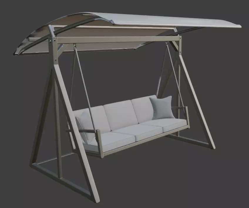 This clean and modern outdoor swing 3D model is perfect for your next project. It features a strong A-frame metal structure, thick cushioned seat with pillows, and sturdy black ropes. Great for garden scenes, patio renders, architectural visuals, or game environments. Comes with simple geometry and PBR textures for realistic results in any software. Easy to use in Blender, 3ds Max, Maya, Unreal Engine, Unity, and more. Multiple file formats included (FBX, OBJ, BLEND, USDZ, GLTF, STL.). Add this stylish swing to your cozy outdoor or living space designs today!