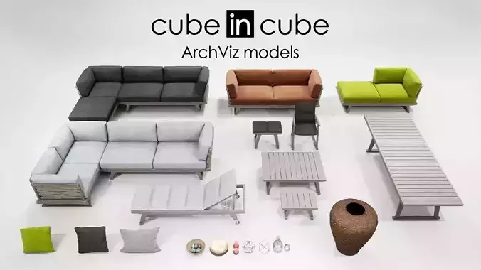 Hight quality collection B&B Italia Outdoor, Gio. This asset is created for outdoor scenes.22 high quality models of furniture and props