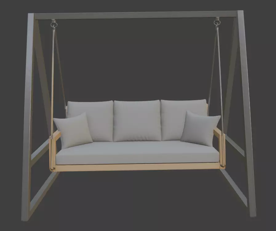 This clean and modern outdoor swing 3D model is perfect for your next project. It features a strong A-frame metal structure, thick cushioned seat with pillows, and sturdy black ropes. Great for garden scenes, patio renders, architectural visuals, or game environments. Comes with simple geometry and PBR textures for realistic results in any software. Easy to use in Blender, 3ds Max, Maya, Unreal Engine, Unity, and more. Multiple file formats included (FBX, OBJ, BLEND, STL, USDZ, GLTF.). Add this stylish swing to your cozy outdoor or living space designs today!