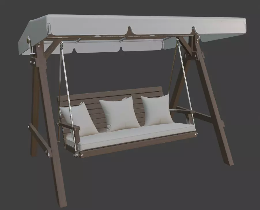 This clean and modern outdoor swing 3D model is perfect for your next project. It features a strong A-frame metal structure, thick cushioned seat with pillows, and sturdy black ropes. Great for garden scenes, patio renders, architectural visuals, or game environments. Comes with simple geometry and PBR textures for realistic results in any software. Easy to use in Blender, 3ds Max, Maya, Unreal Engine, Unity, and more. Multiple file formats included (FBX, OBJ, BLEND, STL, USDZ, GLTF.). Add this stylish swing to your cozy outdoor or living space designs today!