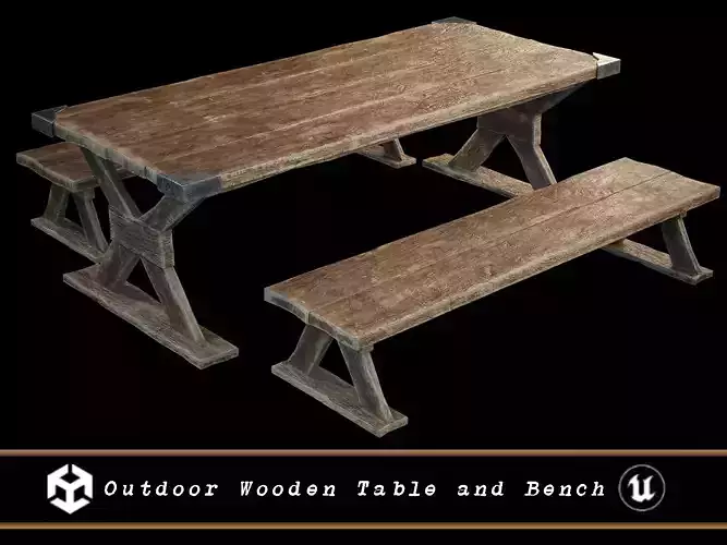 Outdoor Wooden Table and Bench 3D Model. This model contains the Outdoor Wooden Table and Bench itself