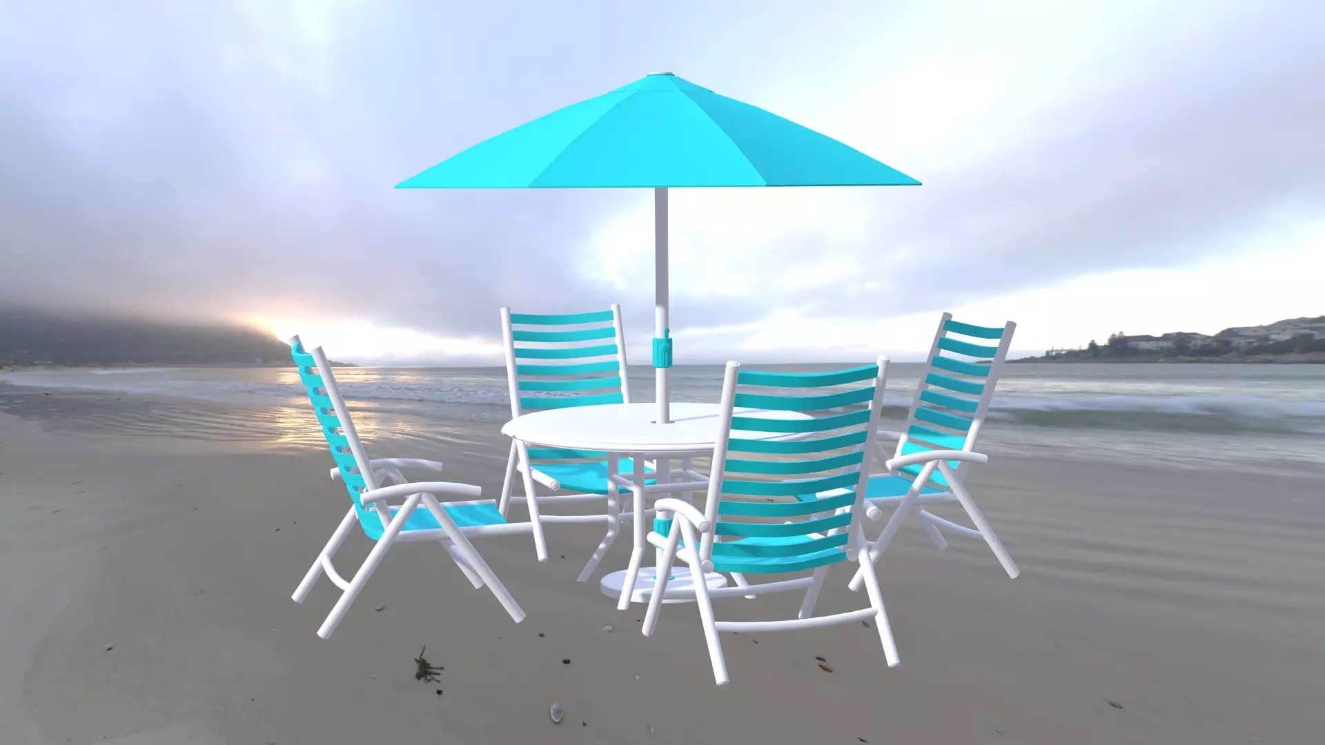 Patio outdoor table with chairs and umbrella Turquoise 3D model