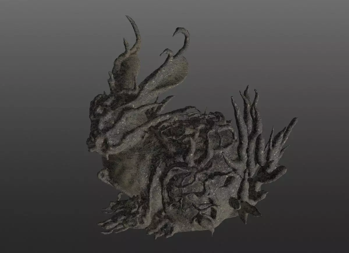 Could you find it hidden inside a forest? Is it a guardian? Is it a nightmare? Should it be your cheap character or original decoration? Choose its name and add it in your project :) Texture is 4096x4096, you have several maps for a PBR material: Albedo, Ambient Occlusion, Diffuse, Normal, Dispacement, Roughness, Specular. Blender file and rig are included! You can move its ears, the snut, little movement of legs, the tail and you can let the rabbit breathe using the bone placed in the chest.