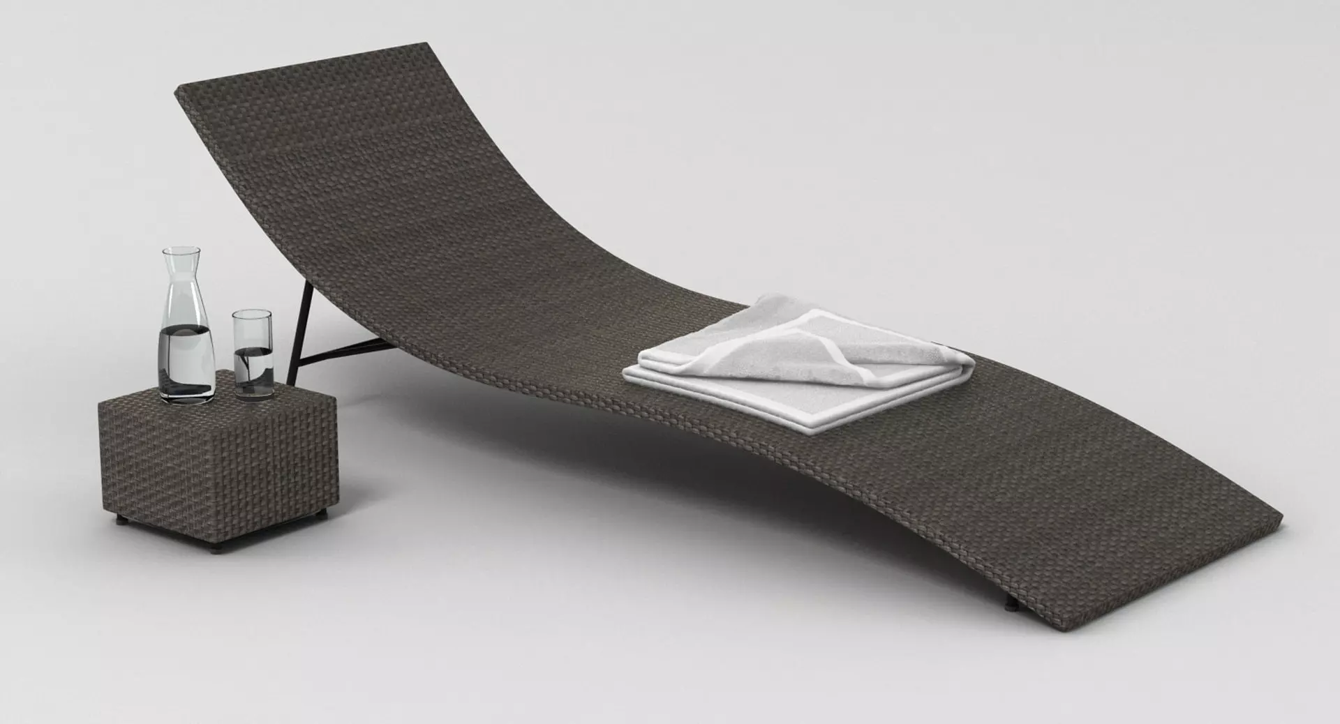 A DETAILED 3D MODEL OF A RATTAN SUN LOUNGER;