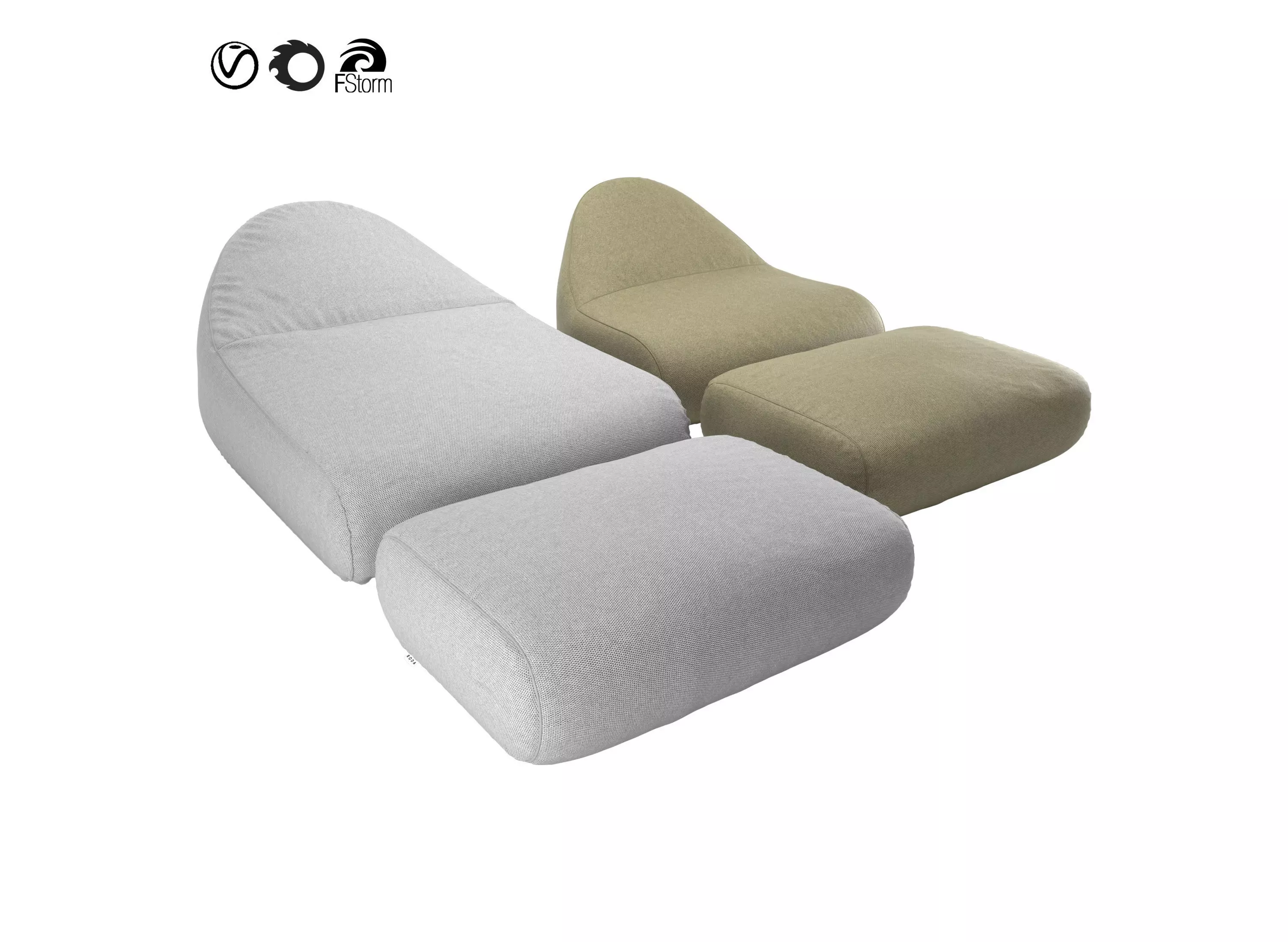 Roda Onda Garden Pouf Beanbag Daybed 3D model
