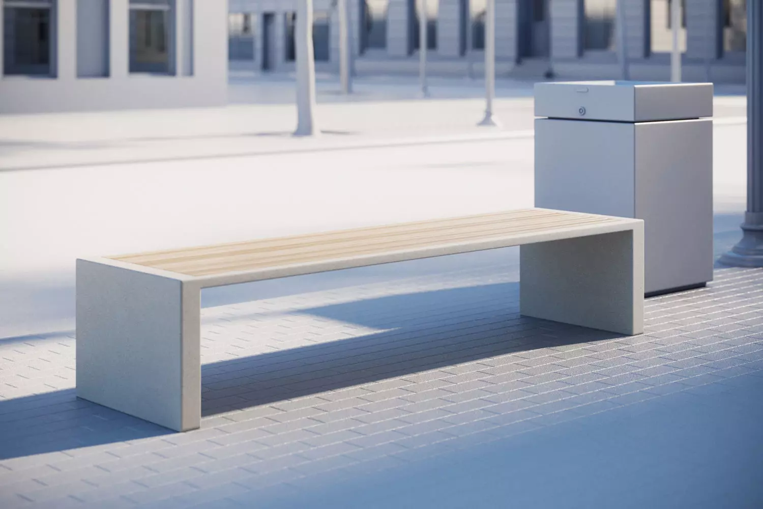 This realistic model includes simple outdoor bech consisting of a wooden seat and two straight side panels.Model prepared for 3d architectural visualisations and other graphic works.