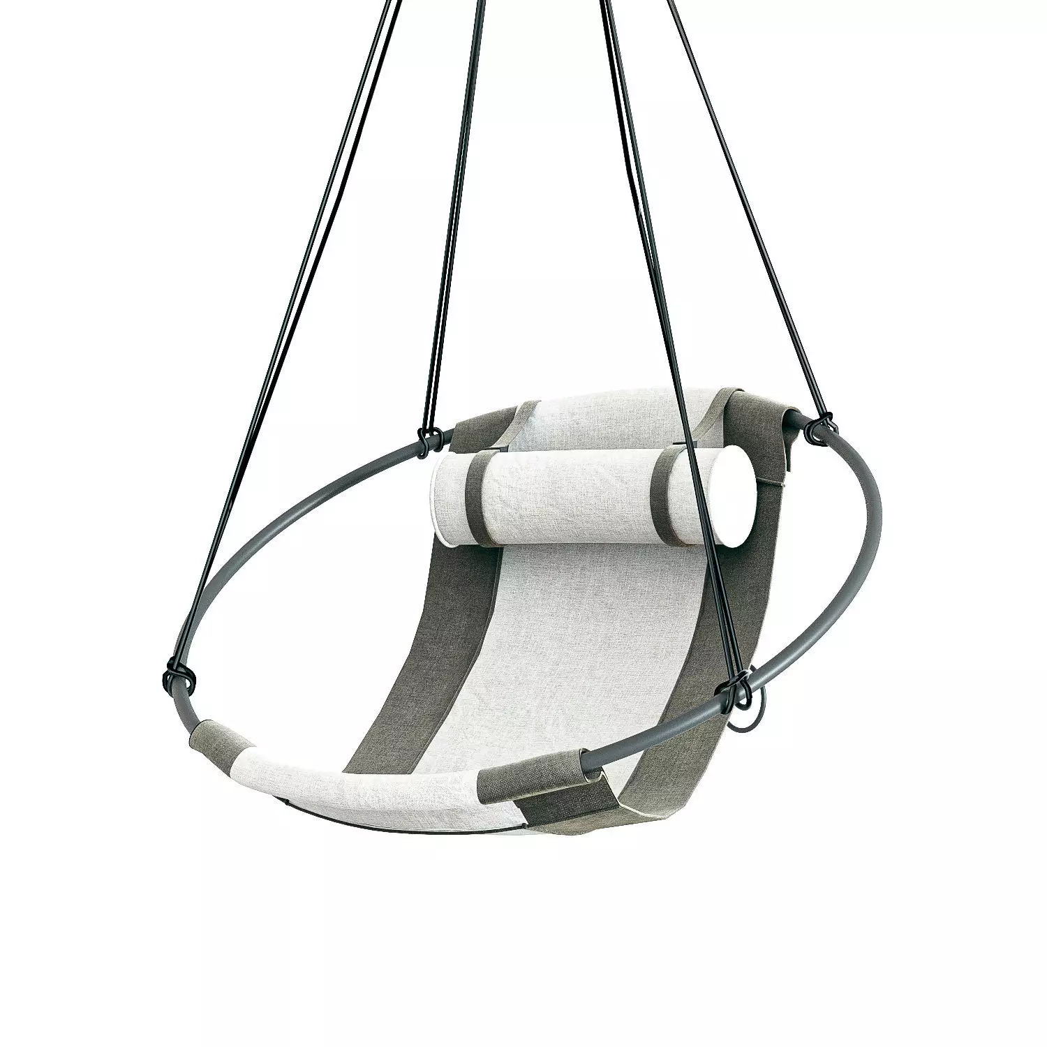 The SLING OUTDOOR hanging chair swing seat is crafted with Spradling Silvertex material – a highly sustainable environmentally-friendly vegan material.‎ Stripped away from all excess, this hanging chair has a circular frame with the sheets of fabric hanging loose within it, to create a sleek, sexy, and oh so comfortable experience.‎