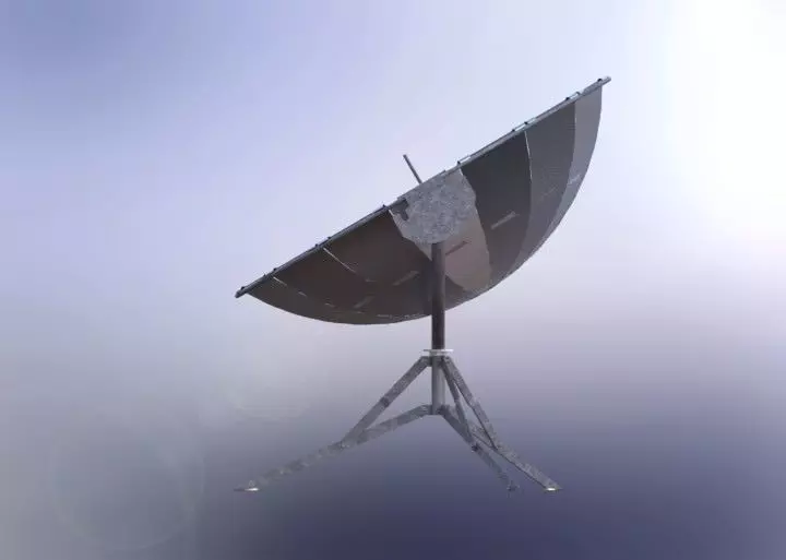 Complete solar cooker, boils water in about 15 min This asm is virtually complete, maybe just a couple of fasteners still missing. Also the original mirror panels were bolted t the frame which of course looked VERY UGLY so i changed the model to include these tabs you see in the asm. To cook from the sunlight, just make sure that the little upright post always has zero shadow, then you know the focus is just right...now dont fr get to move the parrabolic mirror as the sun moves!