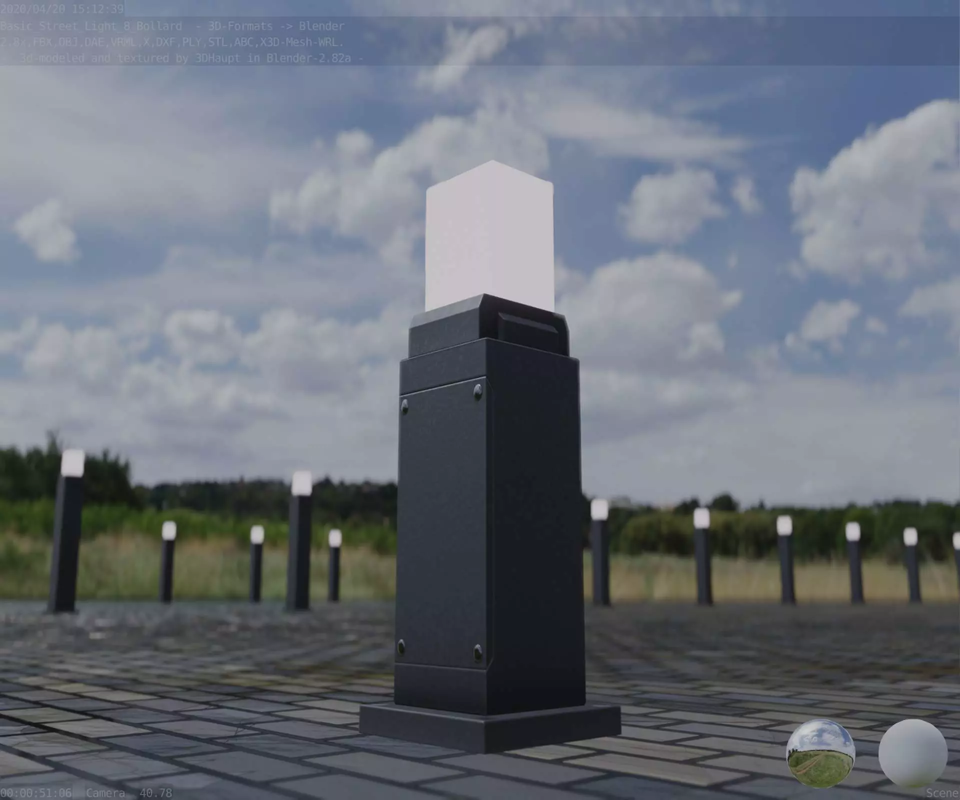 Here is street lamp number 8, a 500 mm high bollard with integrated light (the basic textured version 3).