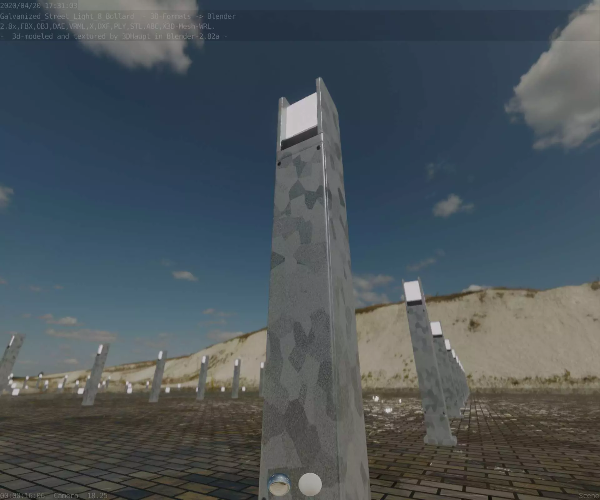 Here is street lamp number 8, a 900 mm high bollard with integrated light (the galvanized textured version).